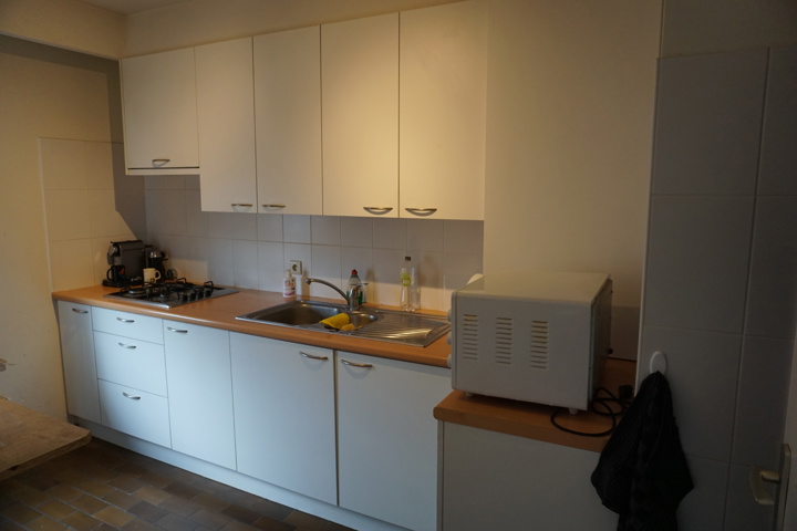 Aansluitend is de half open keuken bereikbaar welke beschikt over een net keukenblok met onder- en bovenkastjes en de volgende inbouwapparatuur: gaskookplaat, afzuigkap, koelkast en 1 ½ rvs-spoelbak en een kast met de opstelling van de cv-combiketel.