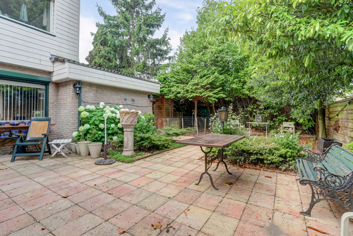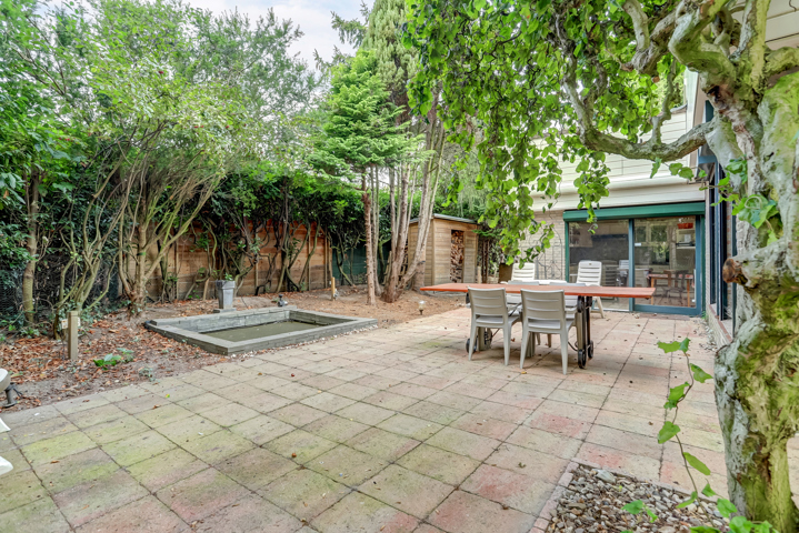De woning is voorzien van een aangelegde voor- en op het zonnige zuid/zuidwesten gesitueerde achtertuin. De voortuin beschikt naast de oprit met toegang tot de garage en parkeergelegenheid voor 3 auto’s over vaste groene beplanting, watertappunt en verlichting. De achtertuin is voorzien van betegeling, diverse terrassen, vaste groene beplanting, vijver, hout hok, diverse elektrapunten, fontein, watertappunt en een eigen achterom.
