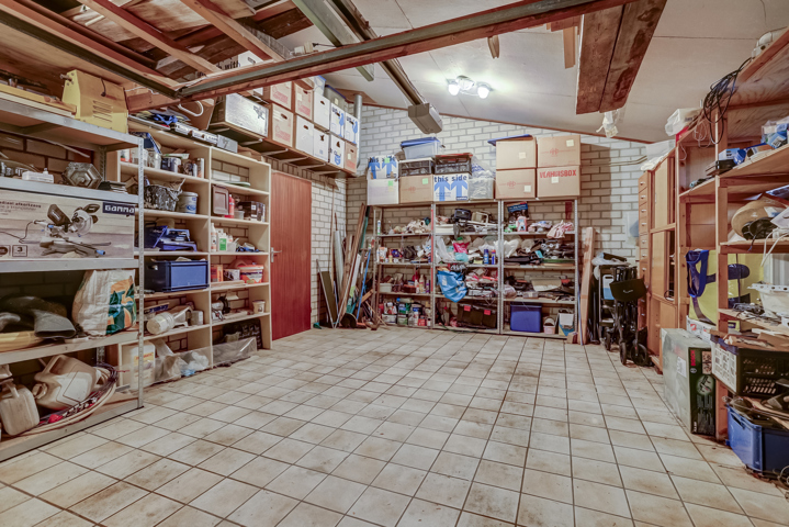 Naast de inpandige garage is de 2e garage aangebouwd. De tweede garage van ca. 27m² is verdeeld in een garage en bergruimte en is voorzien van elektra en een stalen kantelpoort.