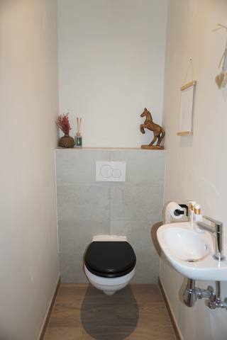 De entree is voorzien van de garderobe en het apart toilet. Het toilet beschikt over een wandcloset, fonteintje en mechanische ventilatie.