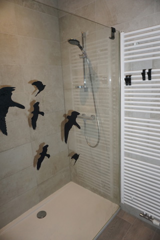 De volledig betegelde badkamer is voorzien van een inloopdouche met thermostaatkraan, badkamermeubel met vaste wastafel, spiegel met verlichting, bergkast en een handdoekradiator. Tevens beschikt de badkamer over de bediening van de mechanische ventilatie.