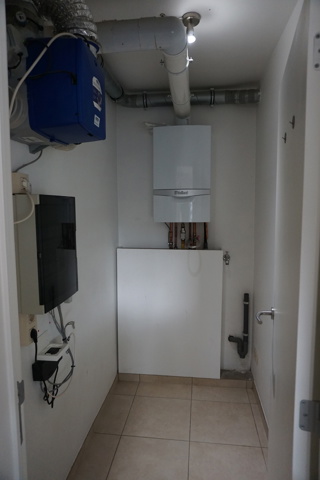 Aansluitend aan de keuken bevindt zich de inpandige berging met de aansluitingen ten behoeve van de wasapparatuur, de opstelling van de cv-combiketel, de groepenkast en de mechanische ventilatie-unit.