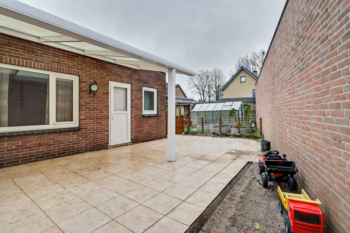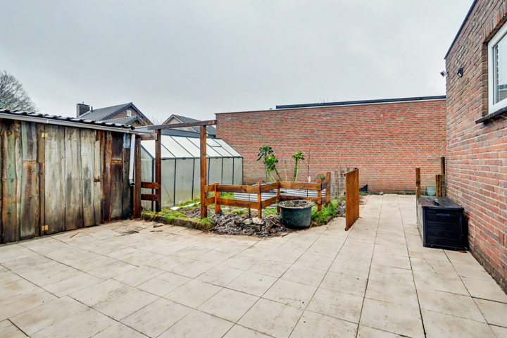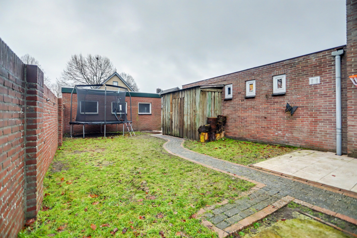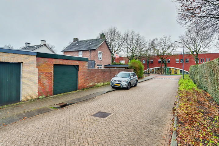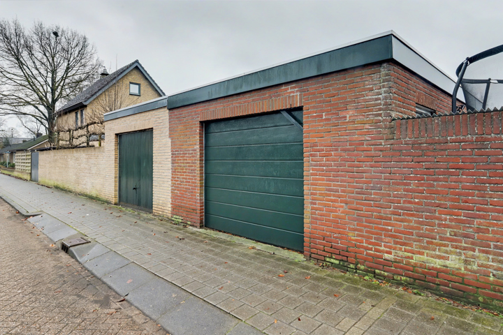 Achter op het perceel staat de vrijstaande stenen garage van ca. 25m². De garage beschikt over een betonnen vloer, spouwmuren, elektrische sectionaal poort en elektra.
