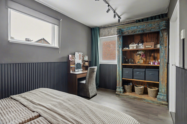 De 3 slaapkamers hebben een oppervlakte van 12m², 12m² en 8m². De 2 slaapkamers aan de achterzijde beschikken over vaste kasten. De grootte slaapkamer aan de achterzijde beschikt verder over een loopdeur met toegang tot een mogelijk dakterras en een rolluik.