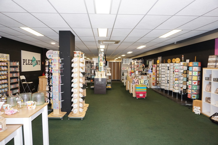 De winkelruimte is gedeeltelijk afgewerkt met een betonvloer en vloerbedekking en een verlaagd systeemplafond voorzien van verlichting en twee airco-units (plafondcassettes).Aan de voorzijde beschikt de winkelruimte over een glazen pui.