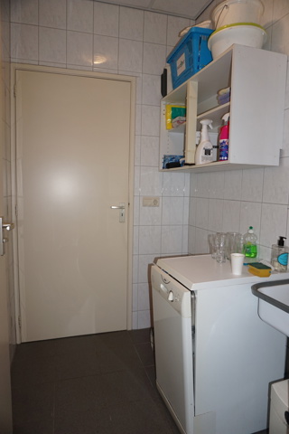 De toiletruimte is voorzien van een closetpot, fonteintje en de aansluiting voor een vaatwasser.