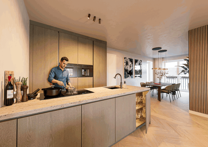 Elk appartement wordt voorzien van een individuele warmtepompinstallatie met eigen buiten- en binnenunit ten behoeve van de warmwatervoorziening. Alle appartementen zijn voorzien van lage temperatuur vloerverwarming met daarnaast ook koeling. In de badkamer worden elektrische design handdoekradiatoren toegepast. De temperatuur is te regelen doormiddel van een kamerthermostaat in de woonkamer, met de mogelijkheid tot na-regeling in de slaapkamer(s). Naast de vloerverwarming zorgt de ventilatie in de appartementen voor een uitstekend binnenklimaat. Elk appartement wordt voorzien van een individueel gebalanceerd ventilatiesysteem met warmteterugwinning (WTW). Door middel van mechanische toevoer krijgen de appartementen schone lucht van buiten en wordt de vervuilde lucht afgevoerd. Met het WTW-systeem staat de afgevoerde warme lucht de warmte af aan de toegevoerde koude buitenlucht. Op deze manier ontstaat er een zeer efficiënt systeem waarbij opwarming plaatsvindt met bestaande warmte, wat energie bespaart.