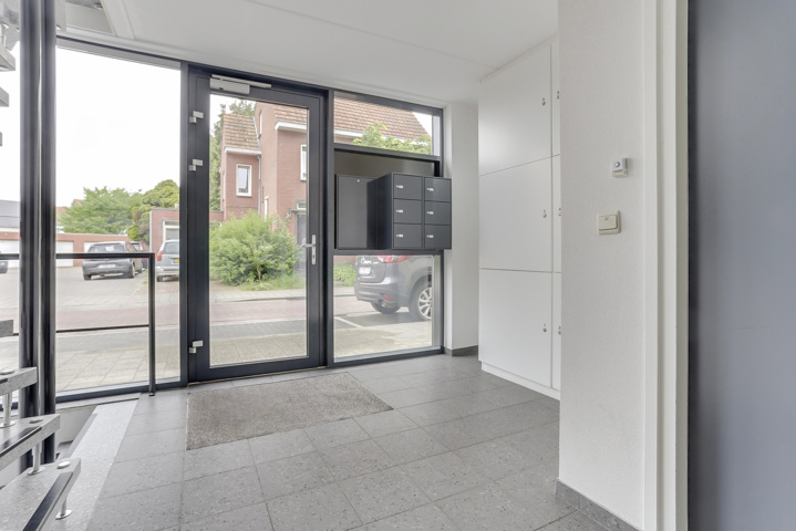 Op de begane grond bevinden zich de entree met brievenbussen, de traphal en de lift.